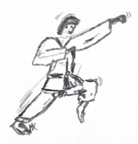 Hervorzuheben ist auch, dass die Schultermuskulatur bewusst locker gehalten werden muss und die Hüfte möglichst nicht die Höhe verändert. Hat man einen Spiegel zur Verfügung sieht man sofort, dass bei angespannter Schultermuskulatur ein "Buckel" entsteht, also immer locker bleiben, man will ja nicht aussehen wie der Glöckner von Notre-Dame.
